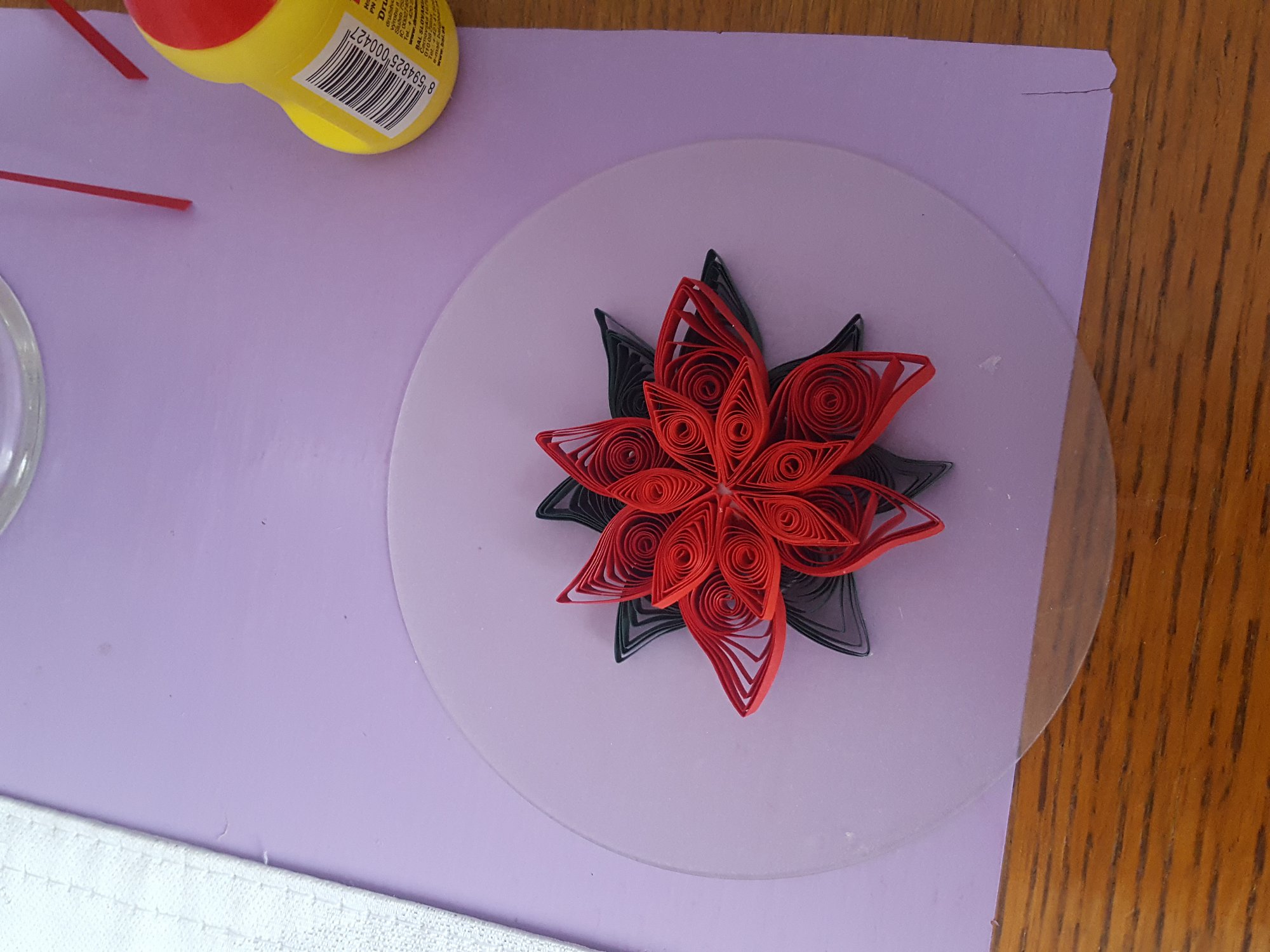 Moc se mi líbí tato metoda zatím zkouším se špejli.To je naše výroba schránky pro Ježíška.Papirky jsem narezala na rezacce a u televize tocim je to takový odstřeďování uvidíme na jak dlouho
